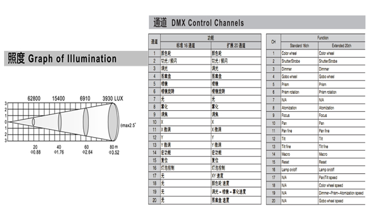 Gobo Wheel: 17 fixed gobos + white, with gobo shake function at variable speed / rotating effect in both directions
