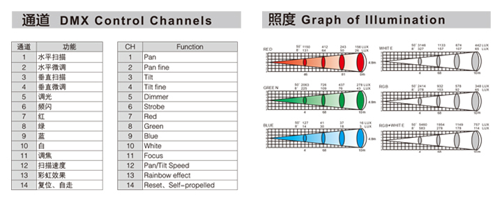 控 制: DMX-512,主從機(jī),自走,聲控