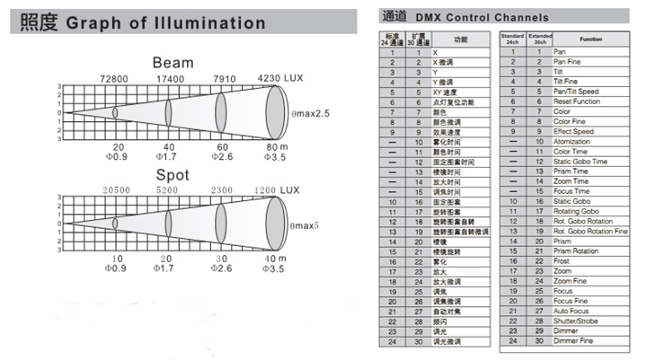 光束角度:光束模式時(shí)2.5°—10°,圖案模式時(shí)5°—20°